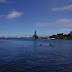 Old and new. Helicopter crosses in front of Ford Trimotor